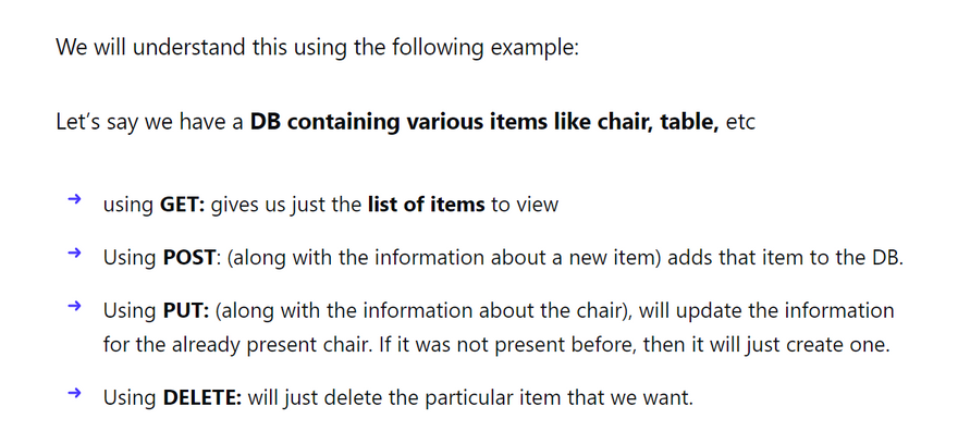While using an API, the can send requests to the server in many different ways according to its needs. These different types are called CRUD(create-retrieve-update-delete)