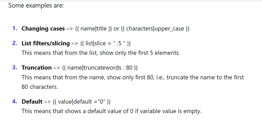 - Template tags These template tags do something. This sentence might be hard to understand but you will get an idea after seeing the examples, so don’t worry !!