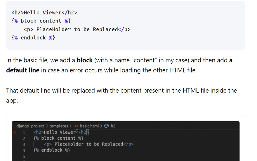 A Front end developer can simply leave HTML comments(wherever he wants DB and other information from Django). Later a programmer can simply replace them with a Template language – known as the Django Templates Language (DTL)