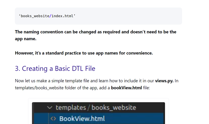 If you try to include index.html in your views.py for the Books app, Django might end up loading the wrong index.html file.