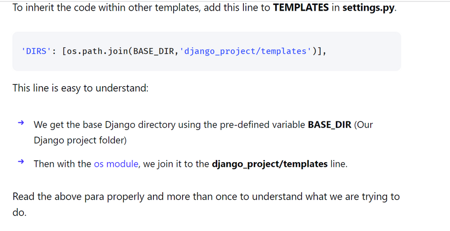 What this line means is that Django will search for templates/HTML files in a folder called templates.