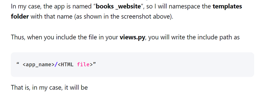 We might have more than one app in our project, and also there can be two HTML files with the same name in more than one app.