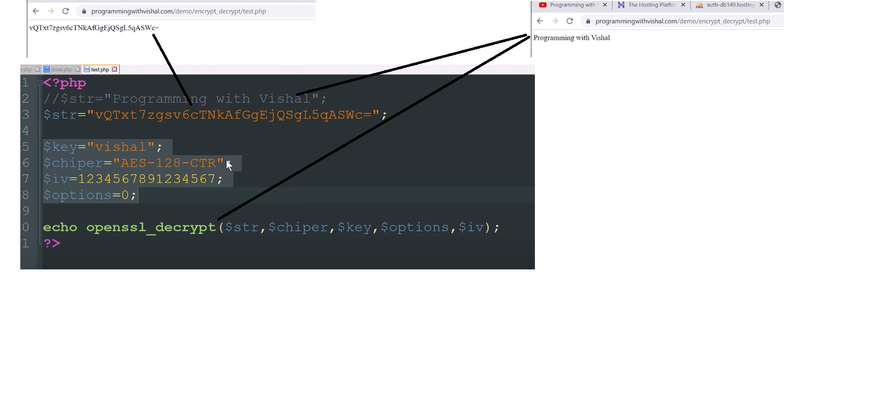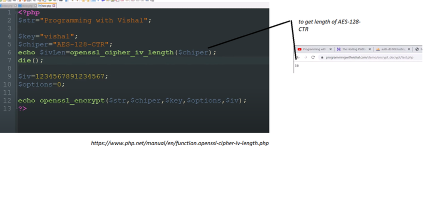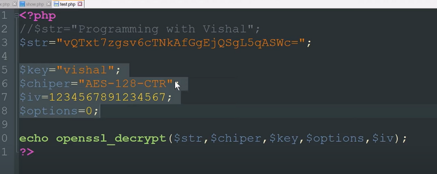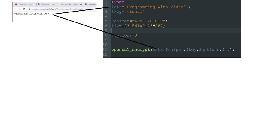 If you want to learn more about the optional arguments, I will suggest you visit the URL I linked with the function name. Alright, now here’s how to do symmetric encryption in PHP.