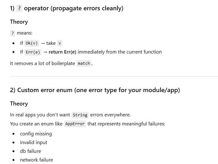 Use libraries like anyhow/thiserror (not needed for basic learning)