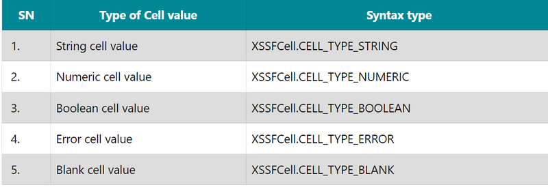 The cell type represents that a cell may contain strings, numeric values, or formulas. A string cell cannot hold numeric values and a numeric cell cannot hold string values.
