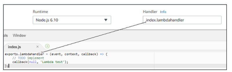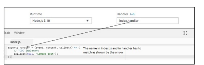 Handler is a name of the AWS lambda function from where the execution starts. It appears in AWS console as shown below −