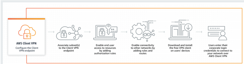 Integrate with your authentication and MDM systems: When utilising the AWS-provided OpenVPN Client software, AWS Client VPN enables authentication using Microsoft Active Directory using AWS Directory Services, Certificate-based authentication, and Federated Authentication using SAML-2.0.