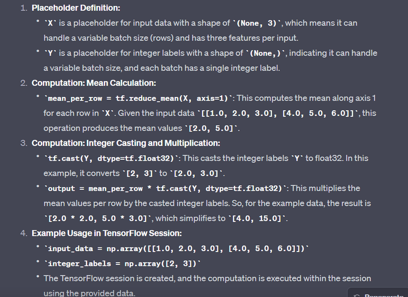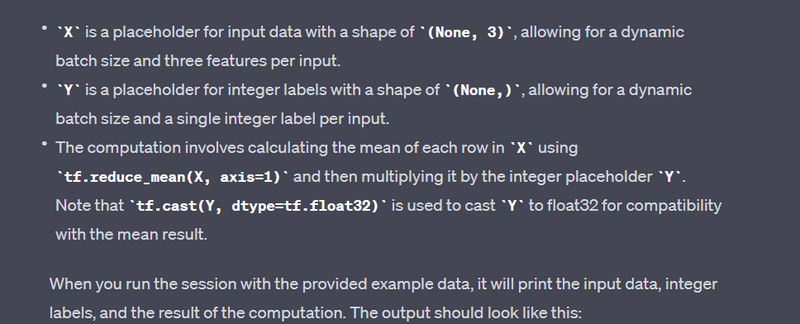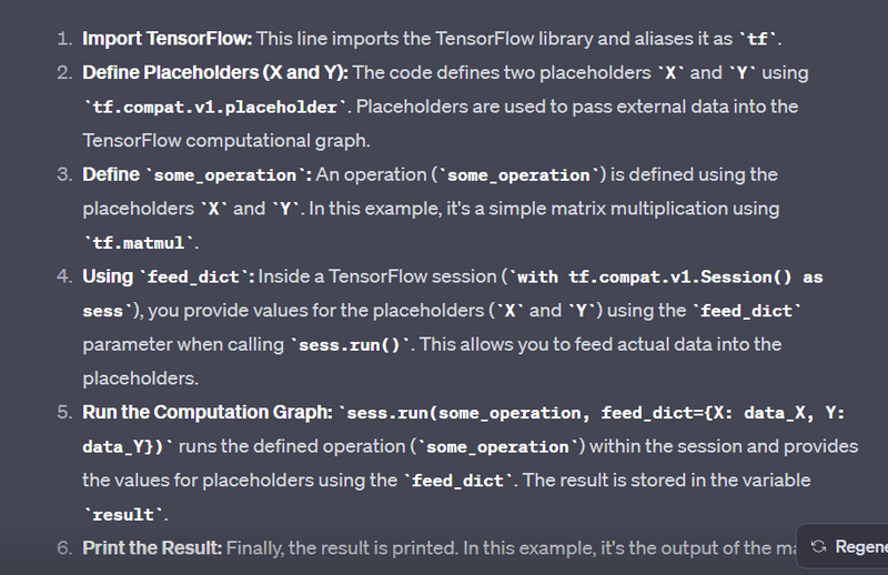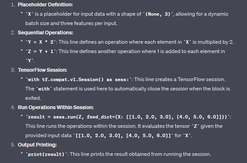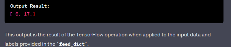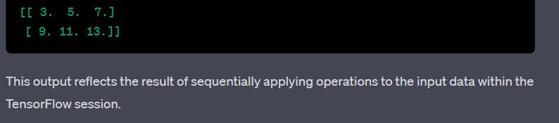 Note: TensorFlow 2.x encourages eager execution by default, and the tf.compat.v1.Session() is not typically used. The examples above include TensorFlow 1.x-style sessions for demonstration purposes.