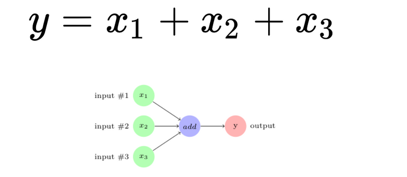 For example, the following computation graph represents the addition of three inputs to produce the output, that is,
