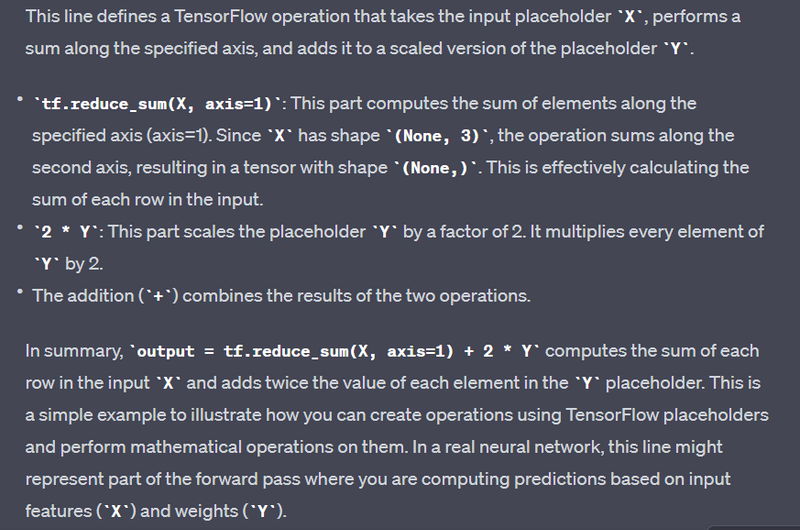 output = tf.reduce_sum(X, axis=1) + 2 * Y