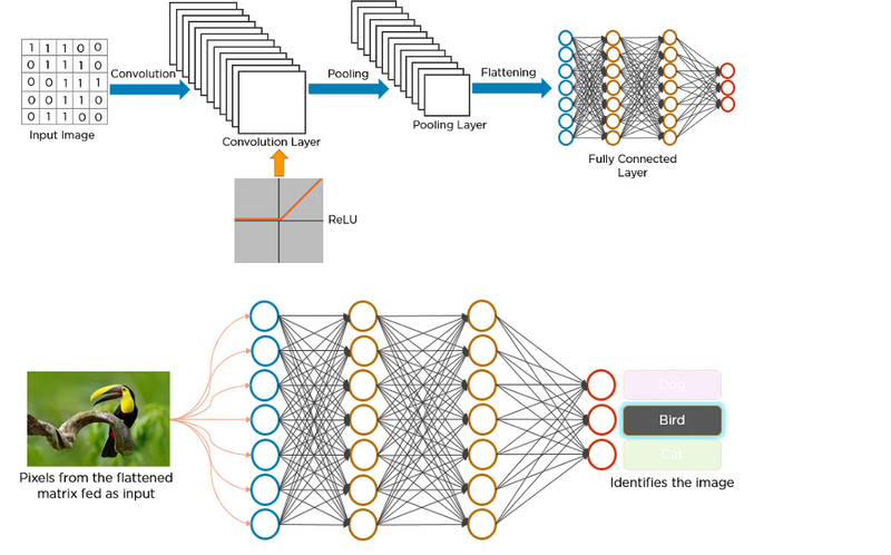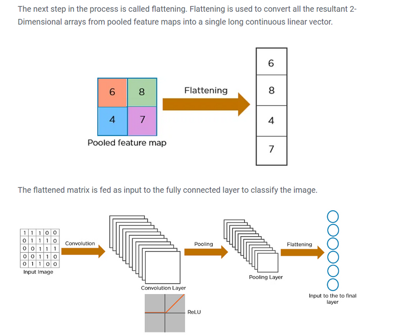 - The pooled feature map is flattened and fed to a fully connected layer to get the final output