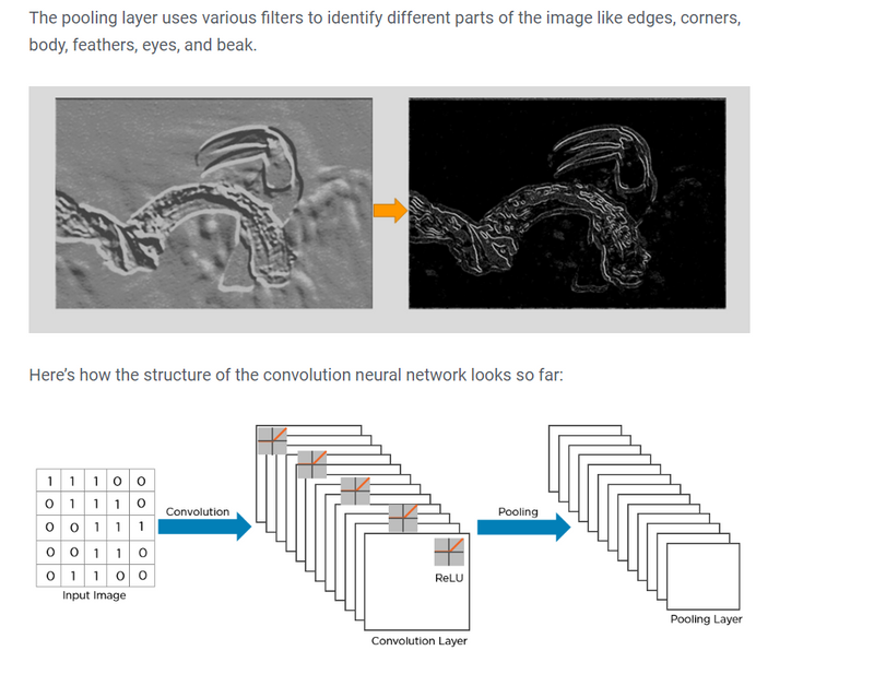 - Different pooling layers with various filters are used to identify specific parts of the image