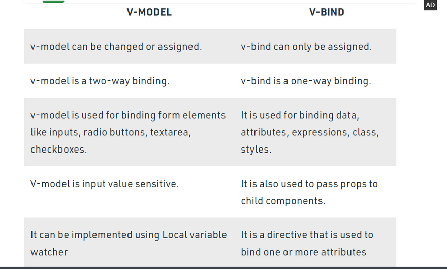 Difference between v-bind and v-model in Vue.js
