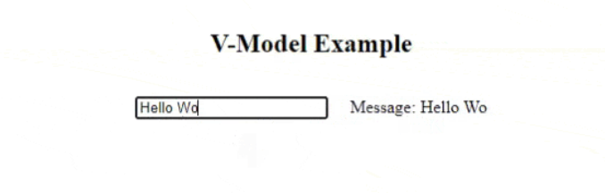 The v-model is a two-way binding which means if you change the input value, the bound data will be changed. The v-model directive is used to create two-way data bindings on form input, textarea, and select elements.