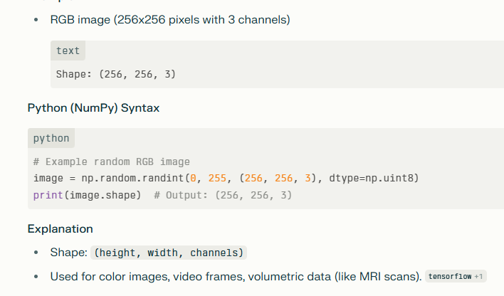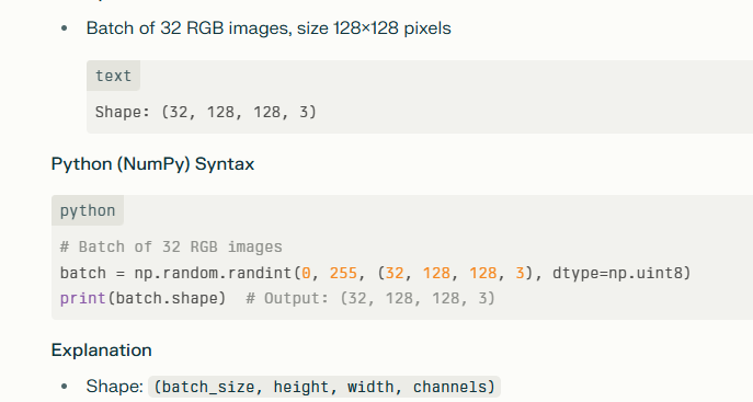 Example: A batch of RGB images; shape: batch_size × height × width × channels.
