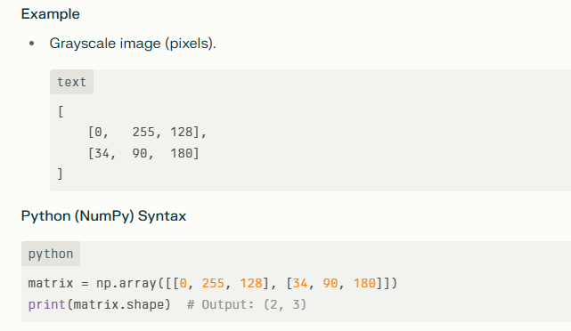 Example: A grayscale image where each entry is a pixel intensity, e.g., [, ].