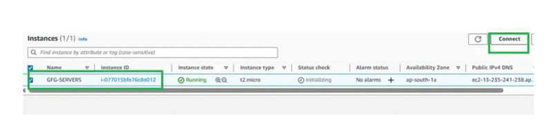 Step 1: Select the server to which you want to connect and click on the connect button at the top of that instance as shown in the image below.