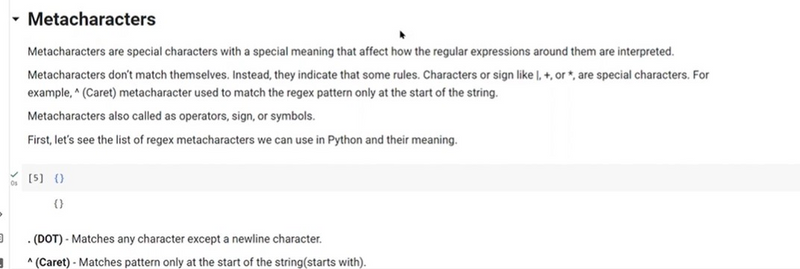 These are some of the fundamental regex metacharacters and techniques commonly used in machine learning and text processing tasks. They allow you to define complex patterns for data extraction, validation, and manipulation. Depending on your specific requirements, you may need to combine multiple metacharacters and regular expressions to achieve the desired results.