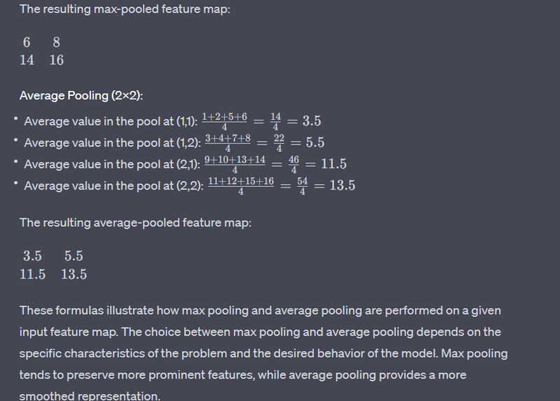 The choice between max pooling and average pooling depends on the specific characteristics of your data and the goals of your neural network. Here are some considerations for both types of pooling operations: