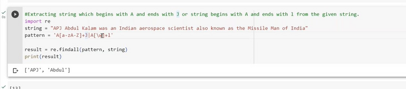 `pattern = r'A\w*J'`