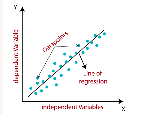 meaning of data points,regression line,dependent independent variable in diagram