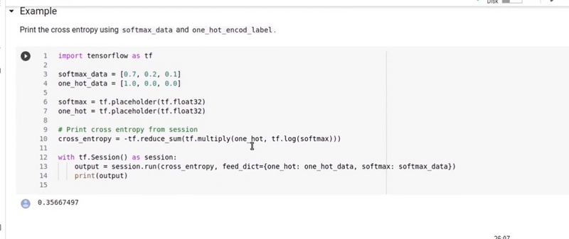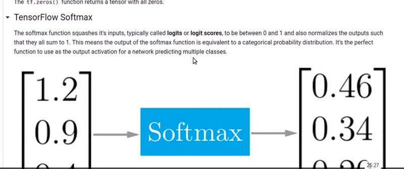 Finally, the tf.nn.softmax function is applied to the one-hot encoded representation. However, applying softmax to a one-hot encoded vector doesn't change the vector itself, as softmax is typically applied to the logits before one-hot encoding. In this case, it doesn't alter the result: