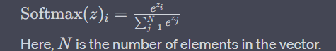 The softmax function for a vector z is defined as: