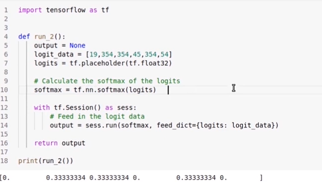 # Run the softmax operation