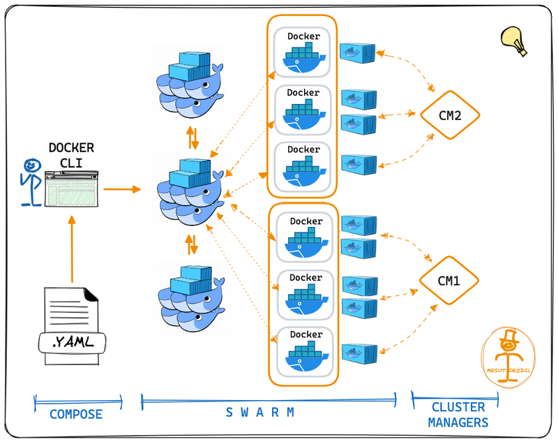 - Docker Swarm lets you connect containers to multiple hosts similar to Kubernetes.