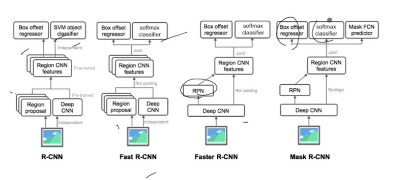 R-CNN: R-CNN was proposed by Ross Girshick et al. in 2014 to deal with the problem of efficient object localization in object detection. The previous methods use what is called Exhaustive Search which uses sliding windows of different scales on image to propose region proposals Instead, this paper uses the Selective search algorithm which takes advantage of segmentation of objects and Exhaustive search to efficiently determine the region proposals. This selective search algorithm proposes approximately 2000 region proposals per image. These are then passed to the CNN model (Here AlexNet is used).