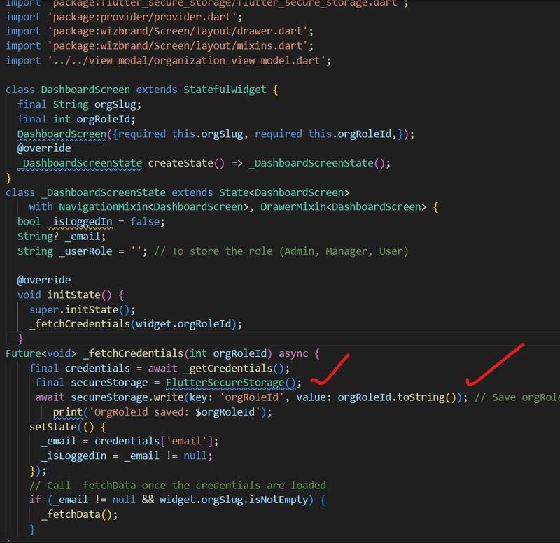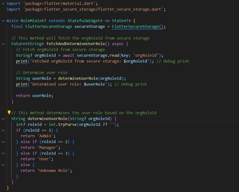 await secureStorage.write(key: 'orgRoleId', value: orgRoleId.toString()); // Save orgRoleId