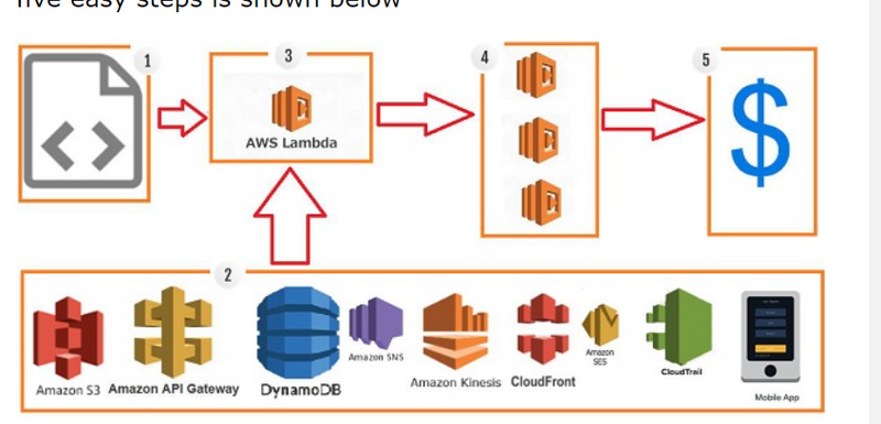 The block diagram that explains the working of AWS Lambda in five easy steps is shown below −