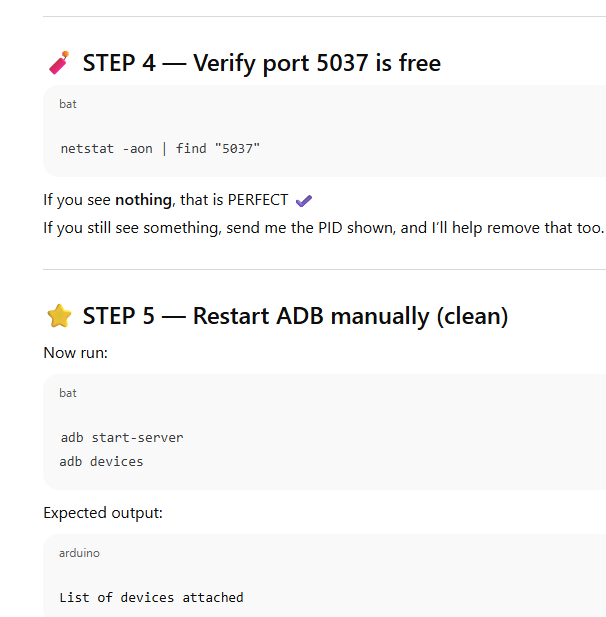 NEXT STEP: Check if ADB PORT (5037) is blocked by another app