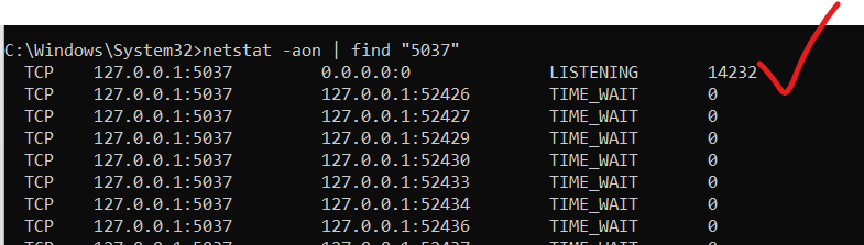 netstat -aon | find "5037"