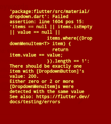 Either zero or 2 or more [DropdownMenuItem]s were detected with the same value