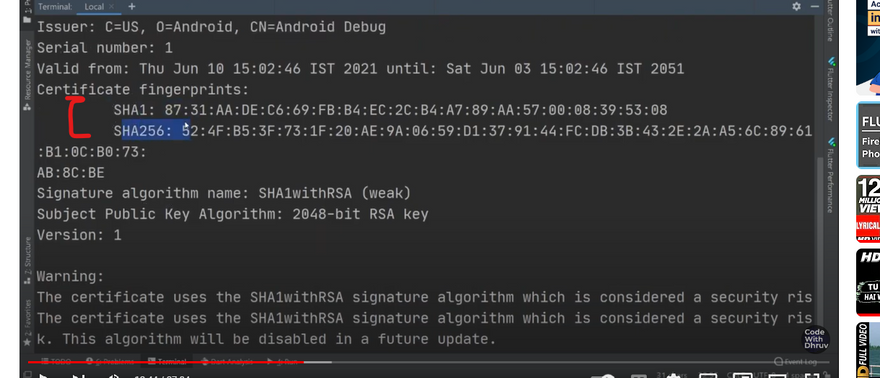 after that u will get sha1 and sha256