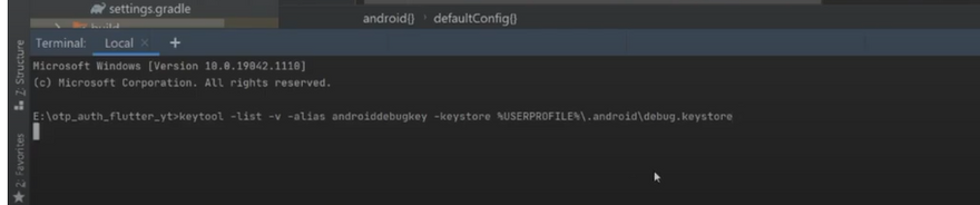 keytool -list -v \-alias androiddebugkey -keystore %USERPROFILE%\.android\debug.keystore