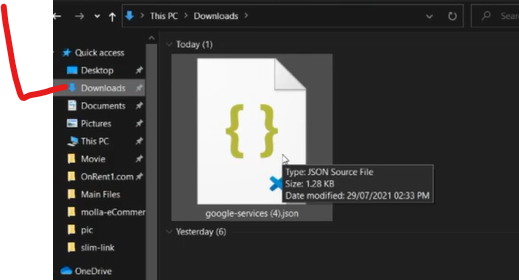 go download folder and check google service json