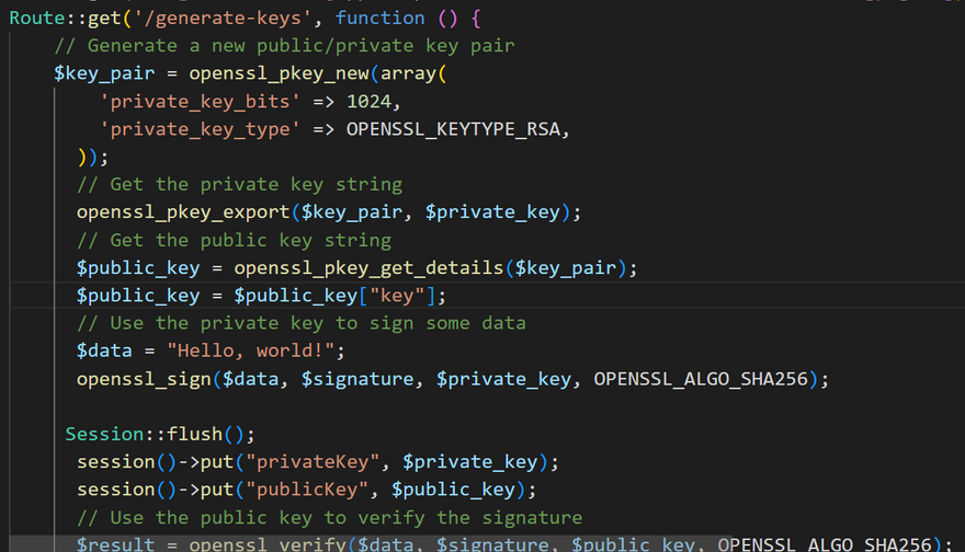 Route::get('/generate-keys', function () {