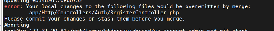 Please commit your changes or stash them before you merge.
