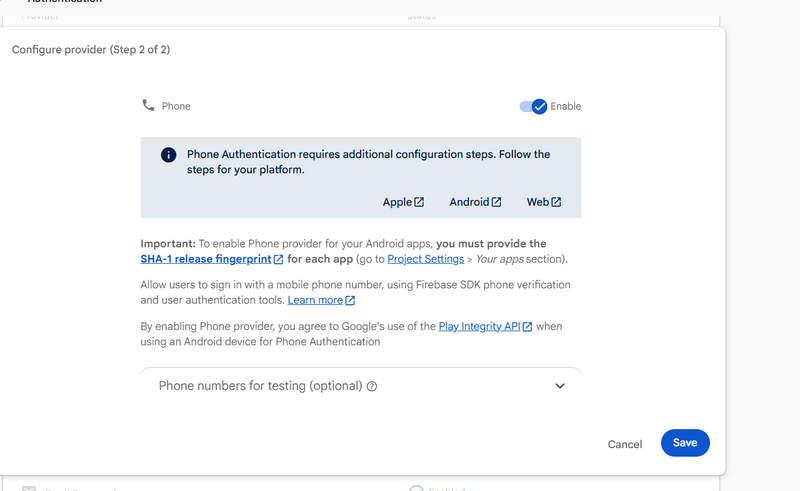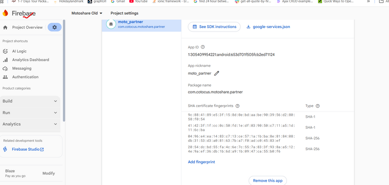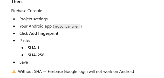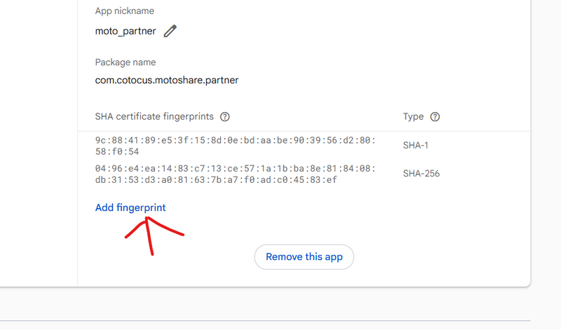 Now go back to Firebase Console and paste these release SHA values also (same place as above).