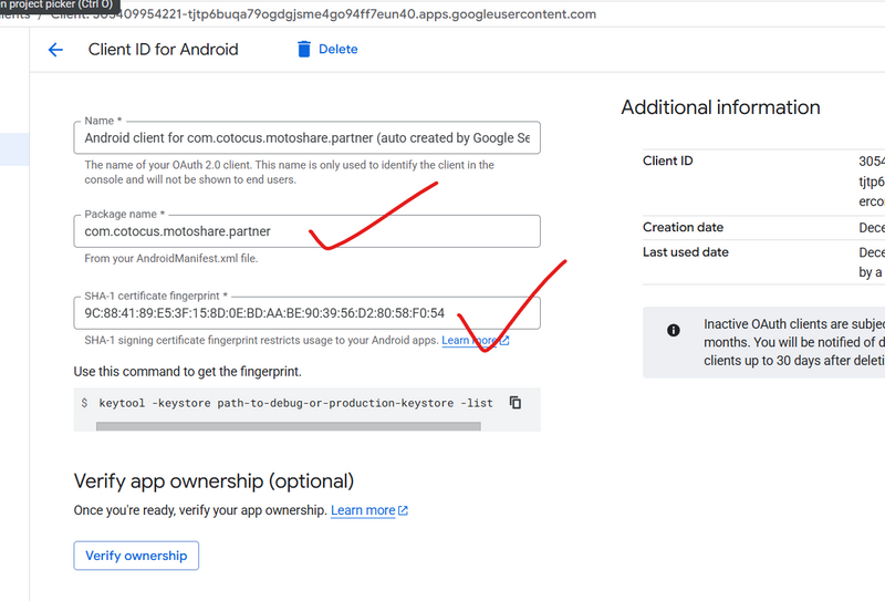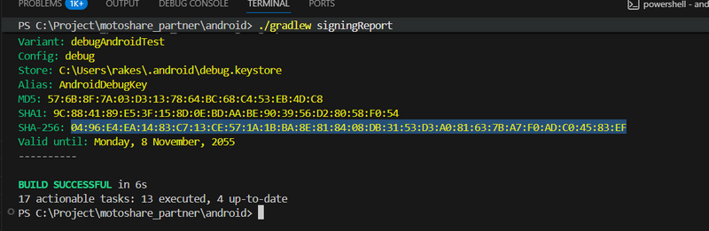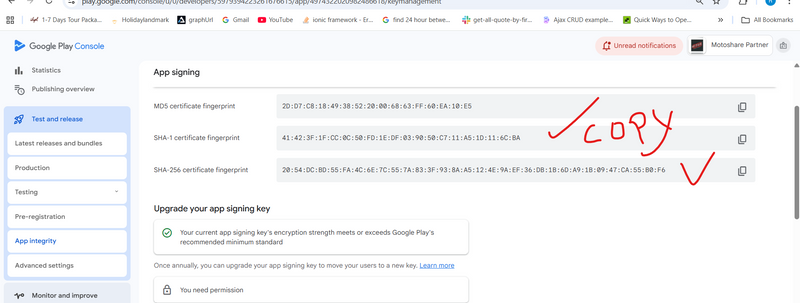 Paste SHA in Google Play Console (only for RELEASE / production)