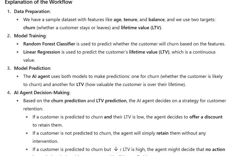 AI Agent's Role: The agent evaluates employees based on their predicted performance scores and autonomously decides on performance reviews or improvement strategies.