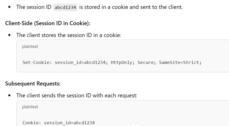 Session ID Storage: The server sends the session ID back to the client in the form of a cookie.
