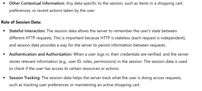 Session Creation: When a user logs in, the server creates a session and stores the user's data in it. -