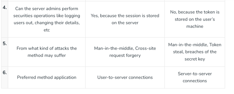 Scalable: Token-based authentication scales better, as the server doesn't need to manage user sessions.