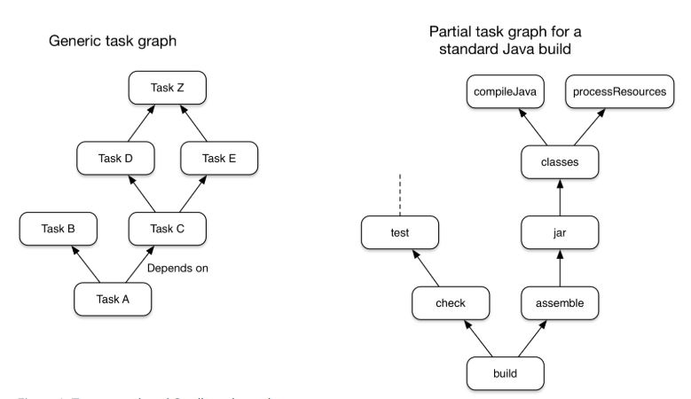 What this means is that a build essentially configures a set of tasks and wires them together — based on their dependencies — to create that DAG. Once the task graph has been created, Gradle determines which tasks need to be run in which order and then proceeds to execute them.