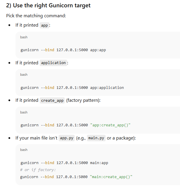 gunicorn --bind 127.0.0.1:5000 "app:create_app()"