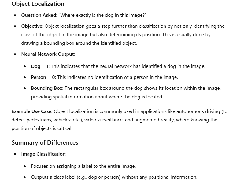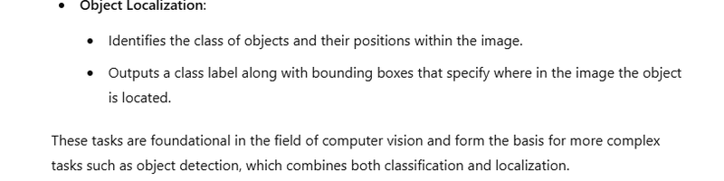 Outputs a class label along with bounding boxes that specify where in the image the object is located.