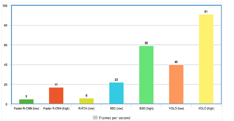 - Open-source 1- Speed YOLO is extremely fast because it does not deal with complex pipelines. It can process images at 45 Frames Per Second (FPS). In addition, YOLO reaches more than twice the mean Average Precision (mAP) compared to other real-time systems, which makes it a great candidate for real-time processing.